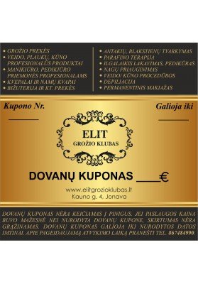 Dovanų kuponas galioja visoms prekėms mūsų e-shop'e, fizinėje parduotuvėje bei grožio salono paslaugoms.
